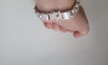 В таких размерах, как на фото, в большей степени будет подходить мужчинам, хотя и некоторые девушки тоже предпочтут приобрести именно такой серебряный браслет на свою женскую руку. В любом случае у Вас есть возможность изменить фактически любой параметр под свой стиль, отчего также может меняться и цена, как в большую, так и в меньшую сторону.